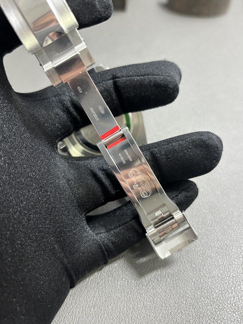 - Cadran noir laqué + aiguille GMT rouge + date loupe Cyclope